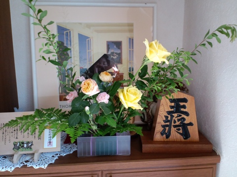 写真の花は、子供が学校のクラブ活動で活けてきたもの。華道茶道クラブだそうで…曰く